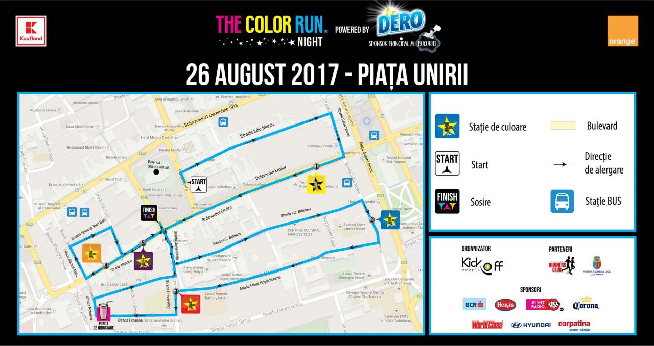 Sâmbătă, 26 august, Piața Unirii se luminează la The Color Run Night Cluj-Napoca. Participanții vor alerga sub tone de pudră fluorescentă și valuri de spumă, la lăsarea întunericului.